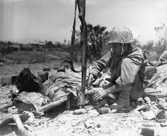 Unloading of supplies - note the number of ships | Care of a wounded man (rifle as a holder for the infusion bottle) | |||||