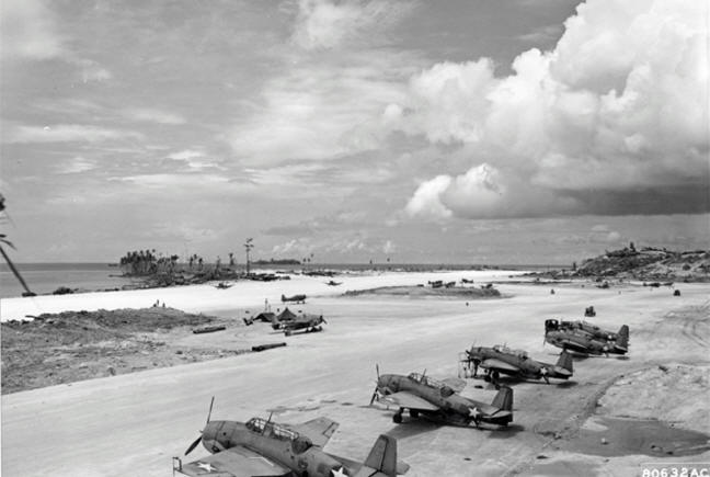 Newly created Segi Point airfield on New Georgia | US Marine Corps TBF-1 torpedobombers on Munda airfield, New Georgia | |||||