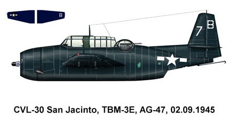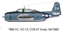 Achtung Modellbauer: Die gegen Kriegsende eingesetzten TBM-3 und -3E hatten den unteren MG-Stand abgedeckt und einen außen gelagerten Fanghaken. Bei Nachtjagdeinheiten – Zusatz „(N)“ - ist von mit einem an der rechten Tragfläche angebrachten Radarbehälter auszugehen. |