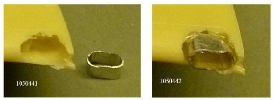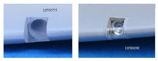 Landescheinwerfer: Links: Die Aussparung für den Landescheinwerfer wird korrigiert. Rechts: Nach Einbau von Reflektor und transparenter Abdeckung. |