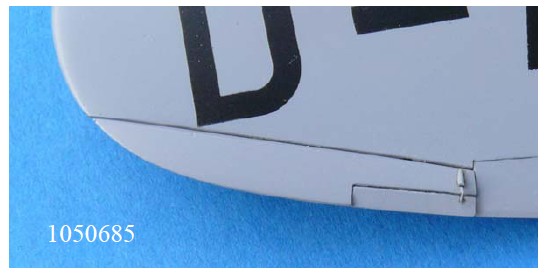 Seitenleitwerk: Der Umriss des Seitenleitwerks stimmt, allerdings passen Ruderbeschläge und Ausgleichsfläche nicht zu Photos. Die Flosse unterhalb des Rumpfes ist zu lang, vorne ist Material wegzunehmen. |