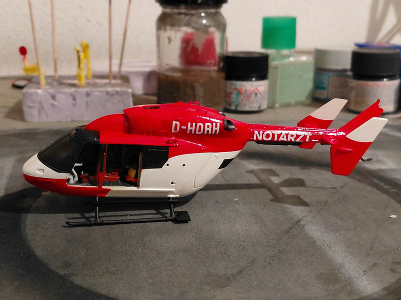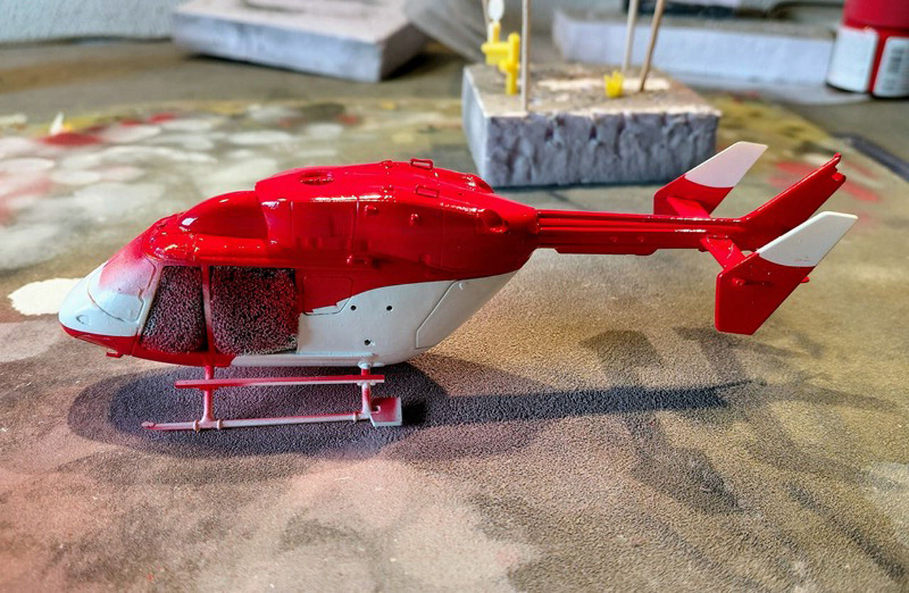 Ich hatte den Medicopter Bausatz von Revell in 1:72 da, eine ehem. Matchbox Form von 1988.