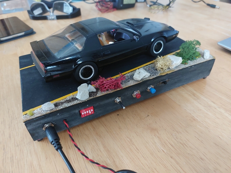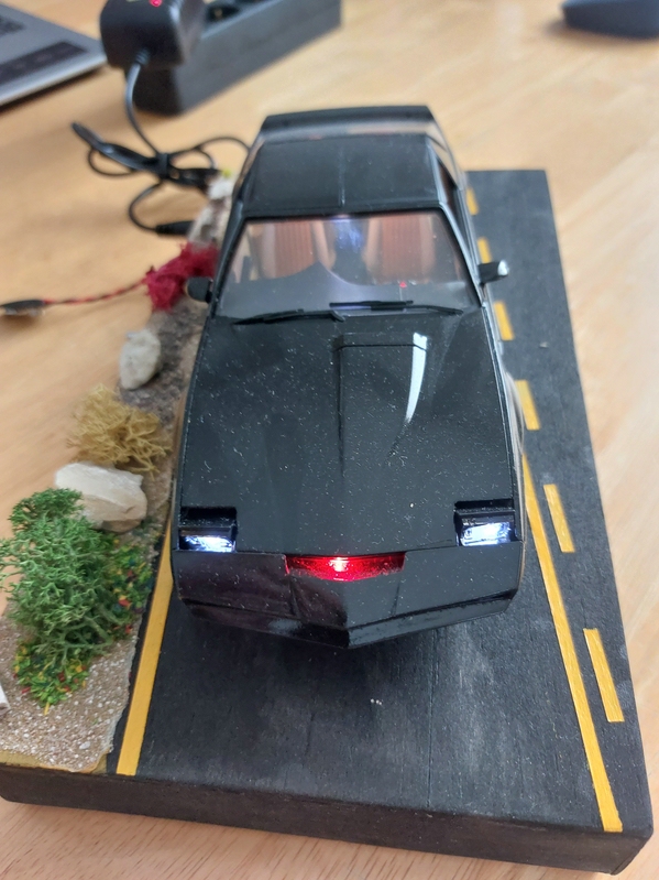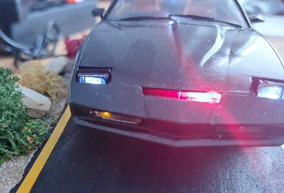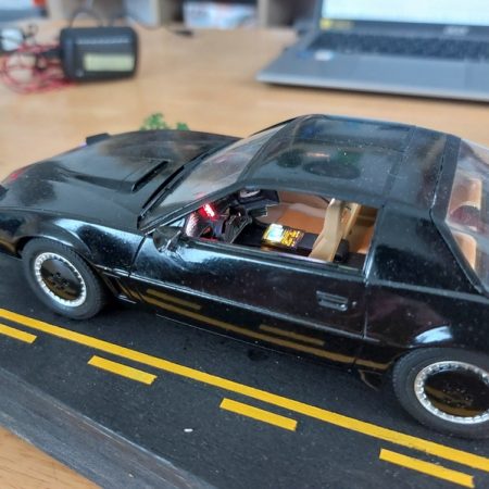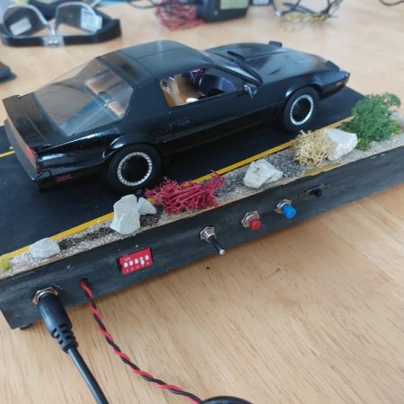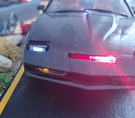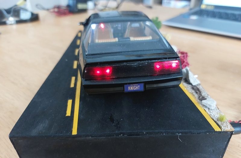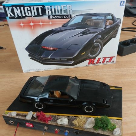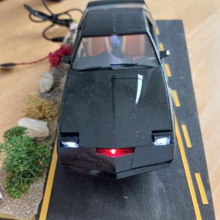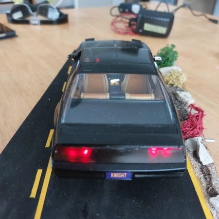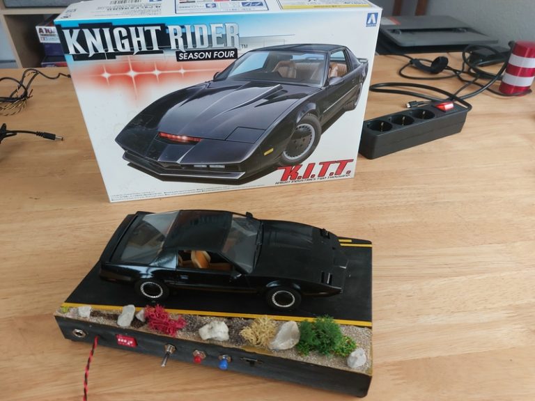 Zudem habe ich, wie man das von einem elektrischen Teelicht kennt, eine rote LED als „K.I.T.T.s Stimme“ eingesetzt, also dieser K.I.T.T quatscht quasi ständig.
