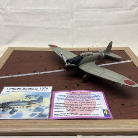 Der Baustatz stammt von Fujimi in 1:48 aus dem Jahr 1974. Habe diesen Out of Box gebaut. Lackiert wurde wieder mittles Airbrush mit Farben von Vallejo. Dazu kam ein Display als Trägerdeck dargestellt.
