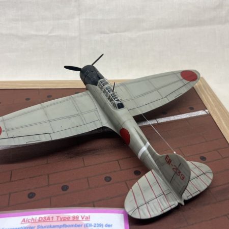 Meine Aichi D3A1 Type 99 Val stelle einen trägergestützen Sturzkampfbomber (EII-239) der Kokutai (Air Gruppe) vom Flugzeugträger Zuikaku der Ei-Nippon Teikoku Kaigun Kik-tai (Kaiserlich Japanische Marineluftdienst) beim 2. Angriff auf Pearl Harbor, Hawaii am 7. Dezember 1941 dar.
