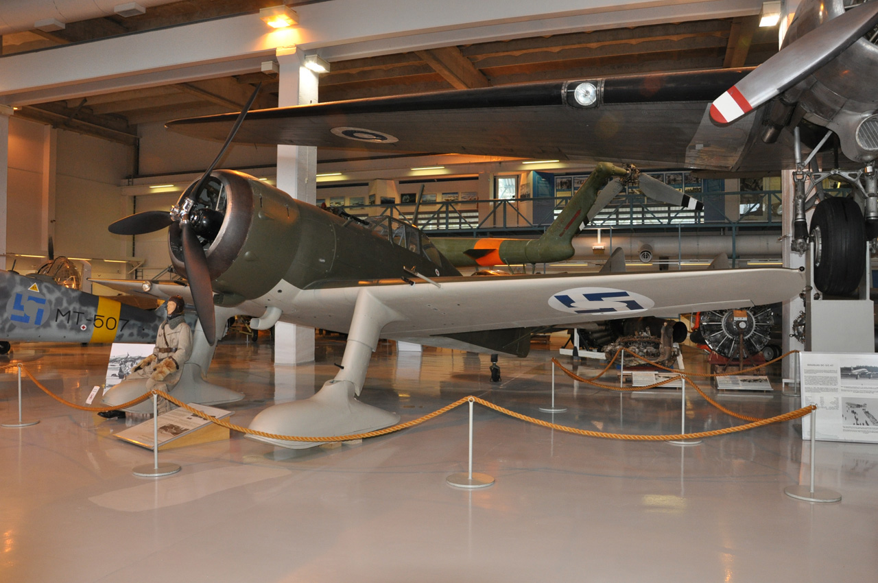 „Wie in den meisten Ländern weltweit wurden auch in Finnland die überzähligen und nicht mehr benötigten Flugzeuge der Luftwaffe ohne weiteres Nachdenken über deren historischen Wert größtenteils verschrottet“, erklärt mir Kai Mecklin (60), Oberstleutnant a. D. der finnischen Luftwaffe und Direktor des Museums beim Rundgang durch die Ausstellungshalle. „Allerdings hatten umsichtige Angehörige der Luftwaffe bereits vor dem Krieg und bis Kriegsende schon einige Modelle eingelagert, die dann den Grundstock eines künftigen Museums bilden sollten. Diese sind teilweise in einem sehr hohen Originalzustand und damit ein Magnet für die rund 25.000 Besucher pro Jahr, die wir hier haben. Die Dauerleihgabe der „Brewster“ macht dieses Museum noch interessanter, so dass alljährlich Besucher aus der ganzen Welt bei uns vorbeikommen. “