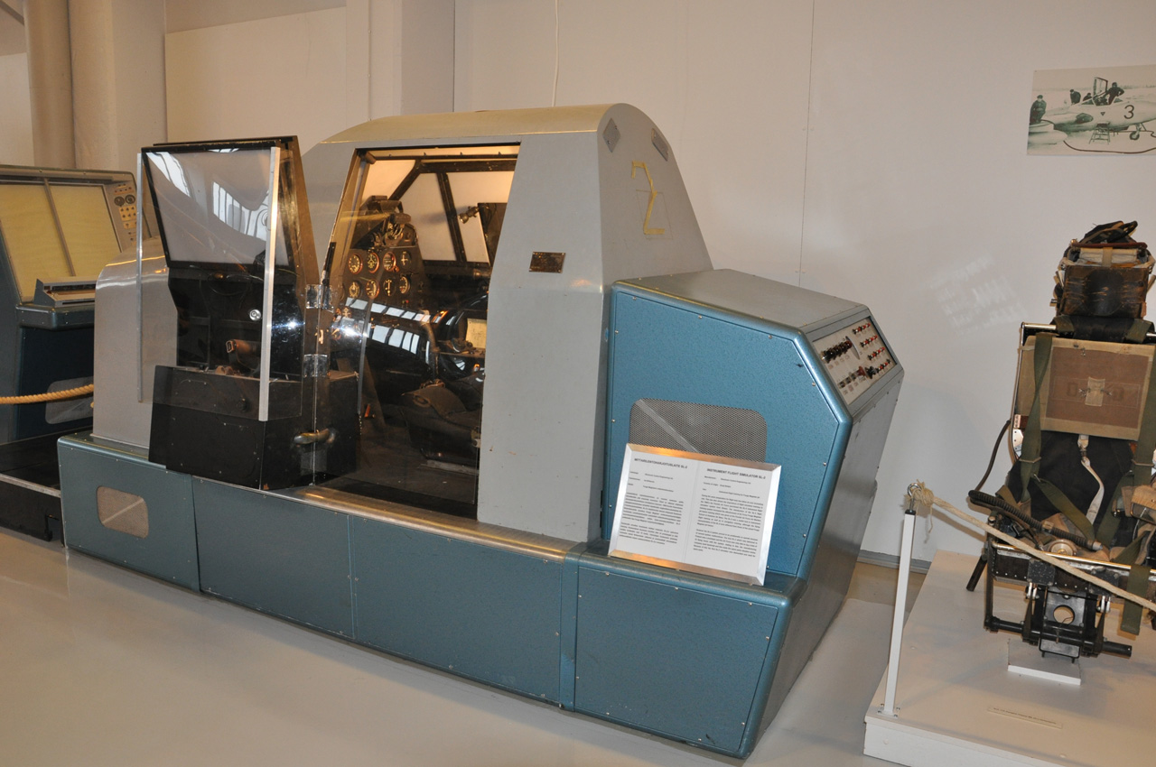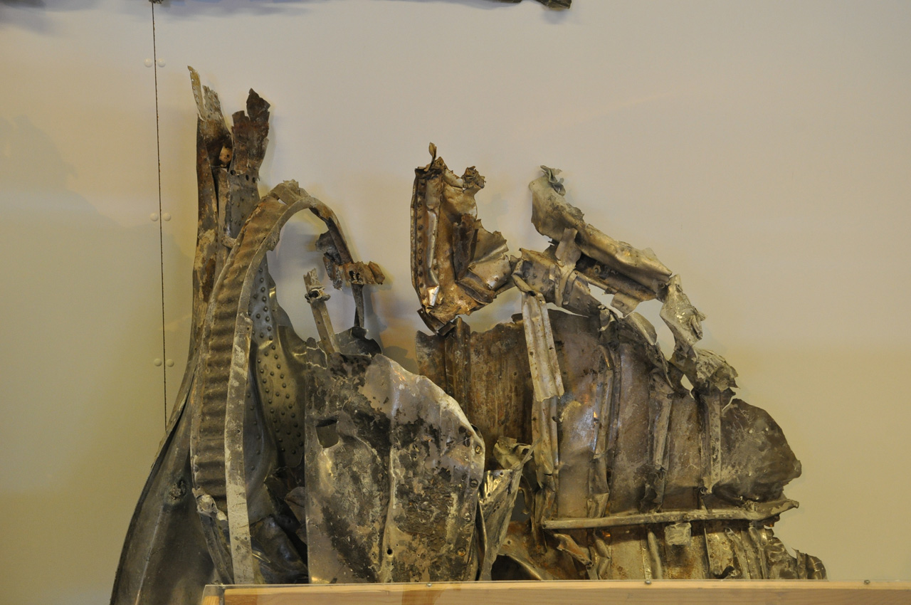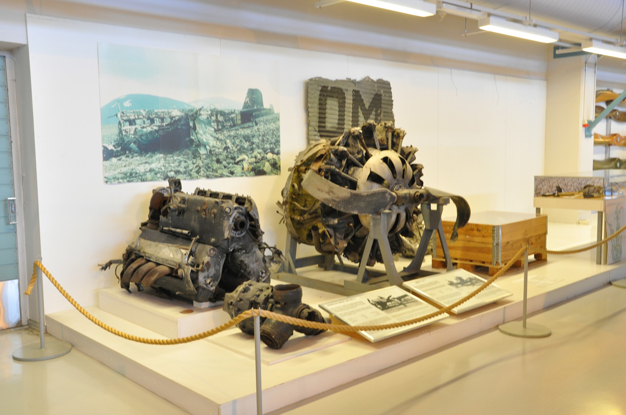 umgeben von Dioramen, Modellen, einer umfangreichen Motorensammlung, persönlichen Ausstattungsgegenständen, Sitzen und Teilen von Flugzeugbergungen.