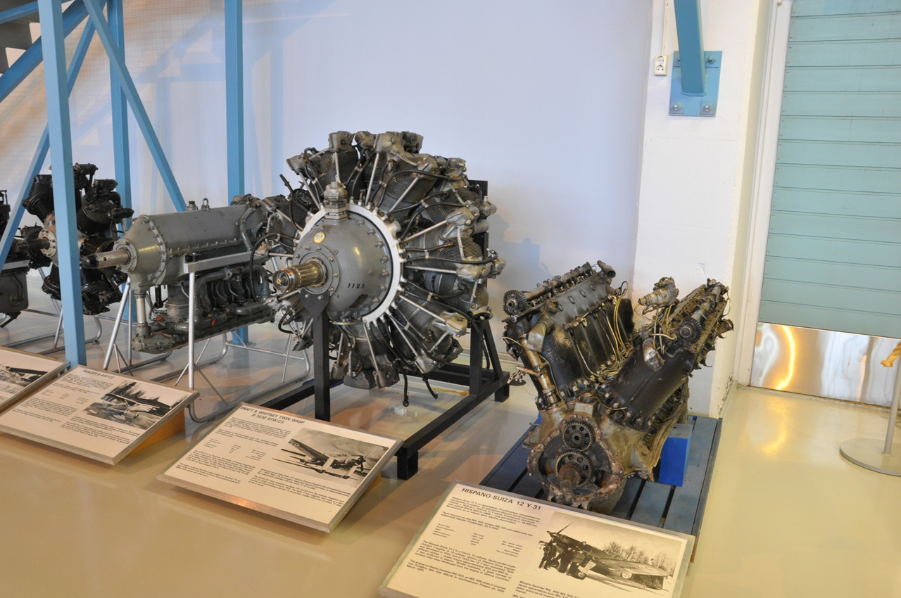 Im Erdgeschoss sind neben den Flugzeugen „Unmengen“ an Motoren und Gerätschaften, teilweise neu, teilweise vollständig- und teilrestauriert oder auch im unrestaurierten Originalzustand, ausgestellt, was besonders für den historisch interessierten Besucher und Modellbauer von Interesse ist.