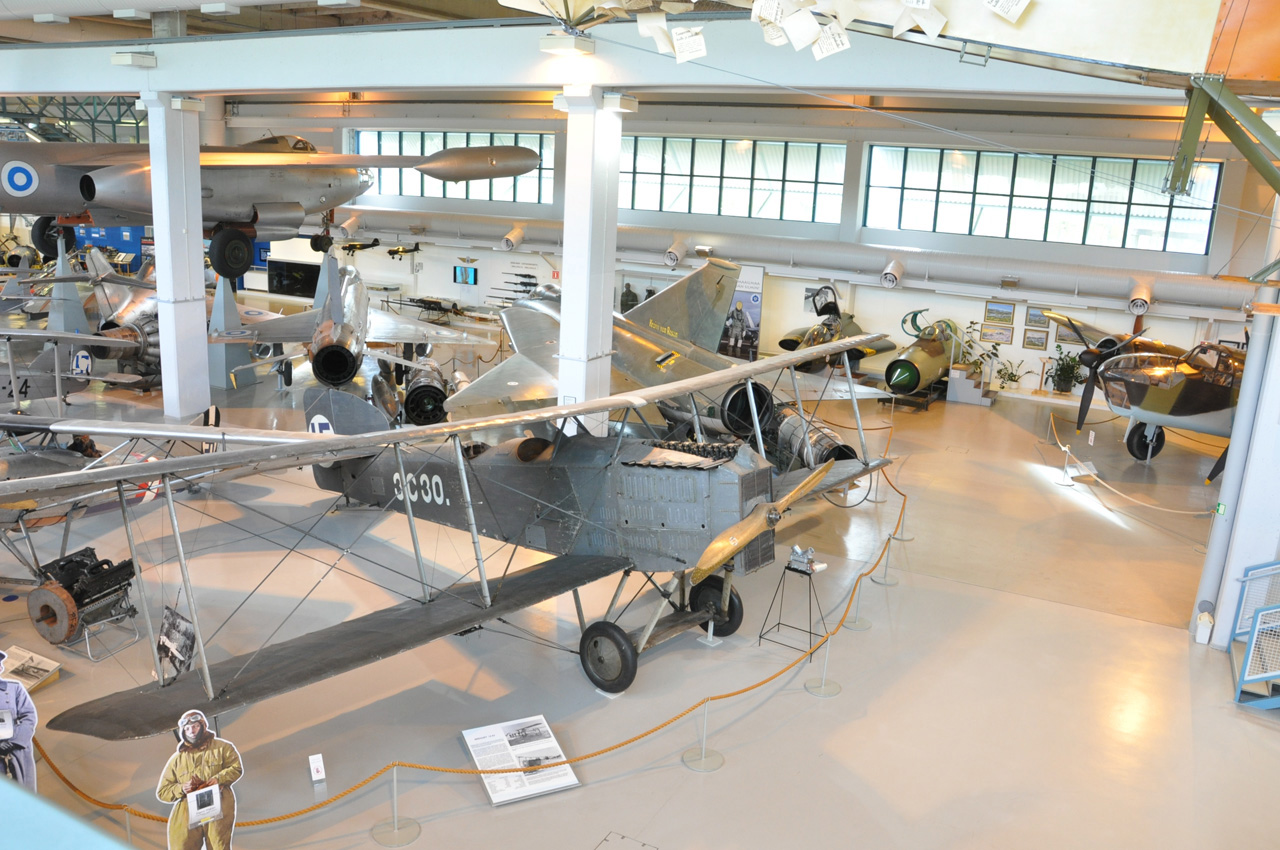 Als ältestes Modell ist ein Nachbau der Thulin Typ D gleich im Eingangsbereich aufgestellt. Dieses mit der Kennung „F.1“ versehene Flugzeug war die erste Maschine der finnischen Streitkräfte. Die seltenen und wenig bekannten Maschinen Breguet 14A2 (3C.30), Gordou-Leseurre GL.22 (8F.12) und die ebenfals restaurierte Martinsyde F.4 Buzzard (MA-24) repräsentieren die frühen Anfänge der finnischen Luftwaffe und die 20er Jahre des letzten Jahrhunderts. Als Trainer und Vertreter der 1930er Jahre stehen eine DeHavilland D.H.60 Moth (OH-EJA) und eine Focke Wulf FW-44J Stieglitz (SZ-4) in der Halle.