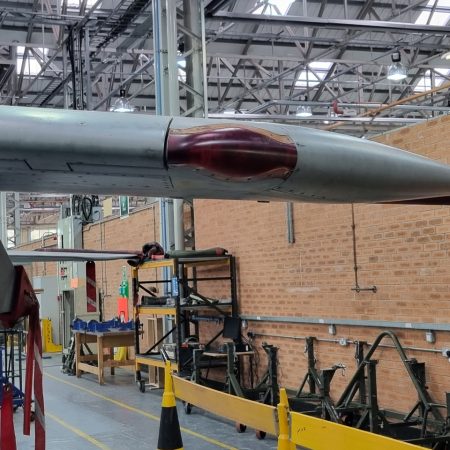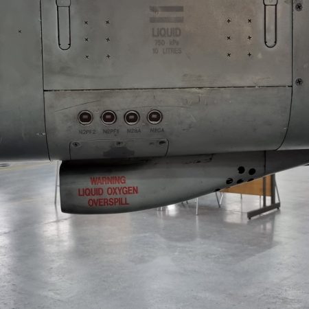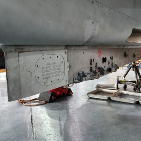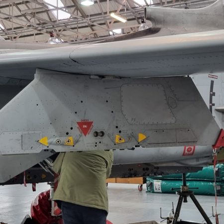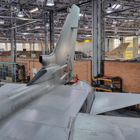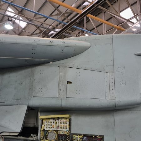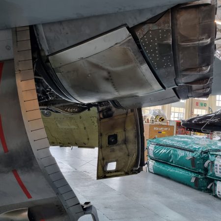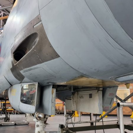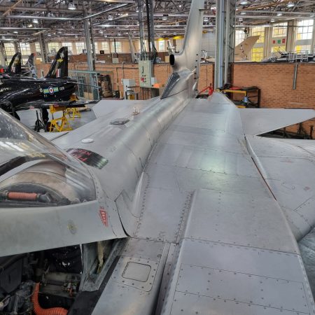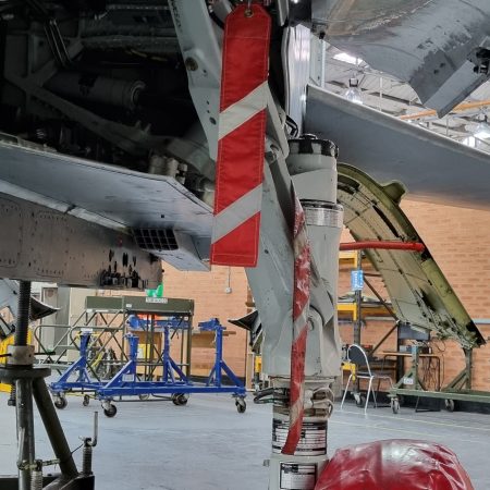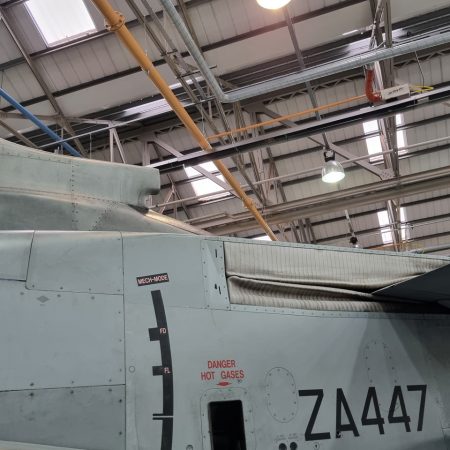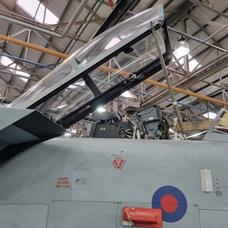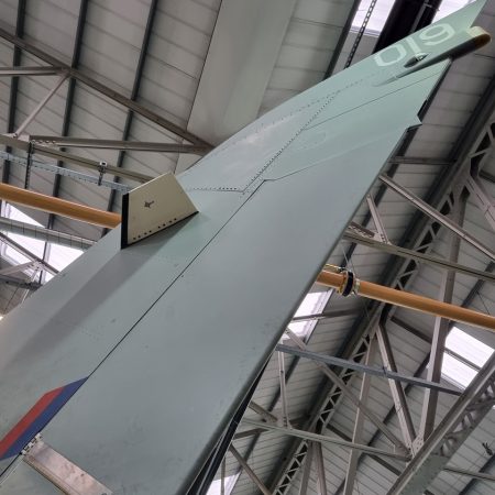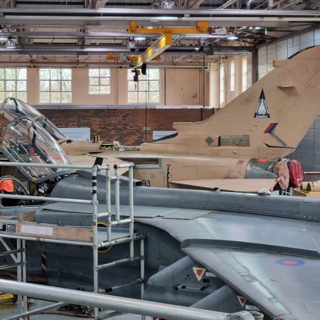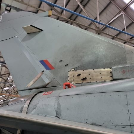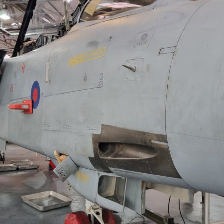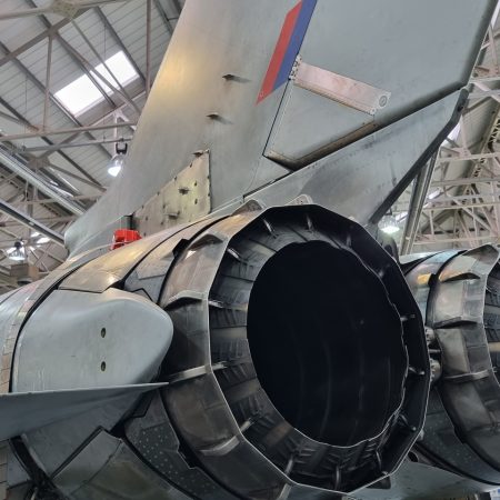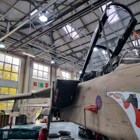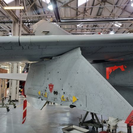 Die Mig Eater-Tornado stand in einfachem Grau in Cosford. Dafür wurde eine andere Tornado in der Wüstentarnung der Operationen Granby und Telic* lackiert und mit dem Haifischmaul der ZA447 versehen, das diese im Golfkrieg trug. Die im Wüstentarn bemalte Maschine war aber selbst nie dort im Einsatz und wurde erst später umlackiert. Interessant auch die Crash Pads unter den Flügeln, um die Verletzungsgefahr bei Stürzen vom Flügel zu verringern.