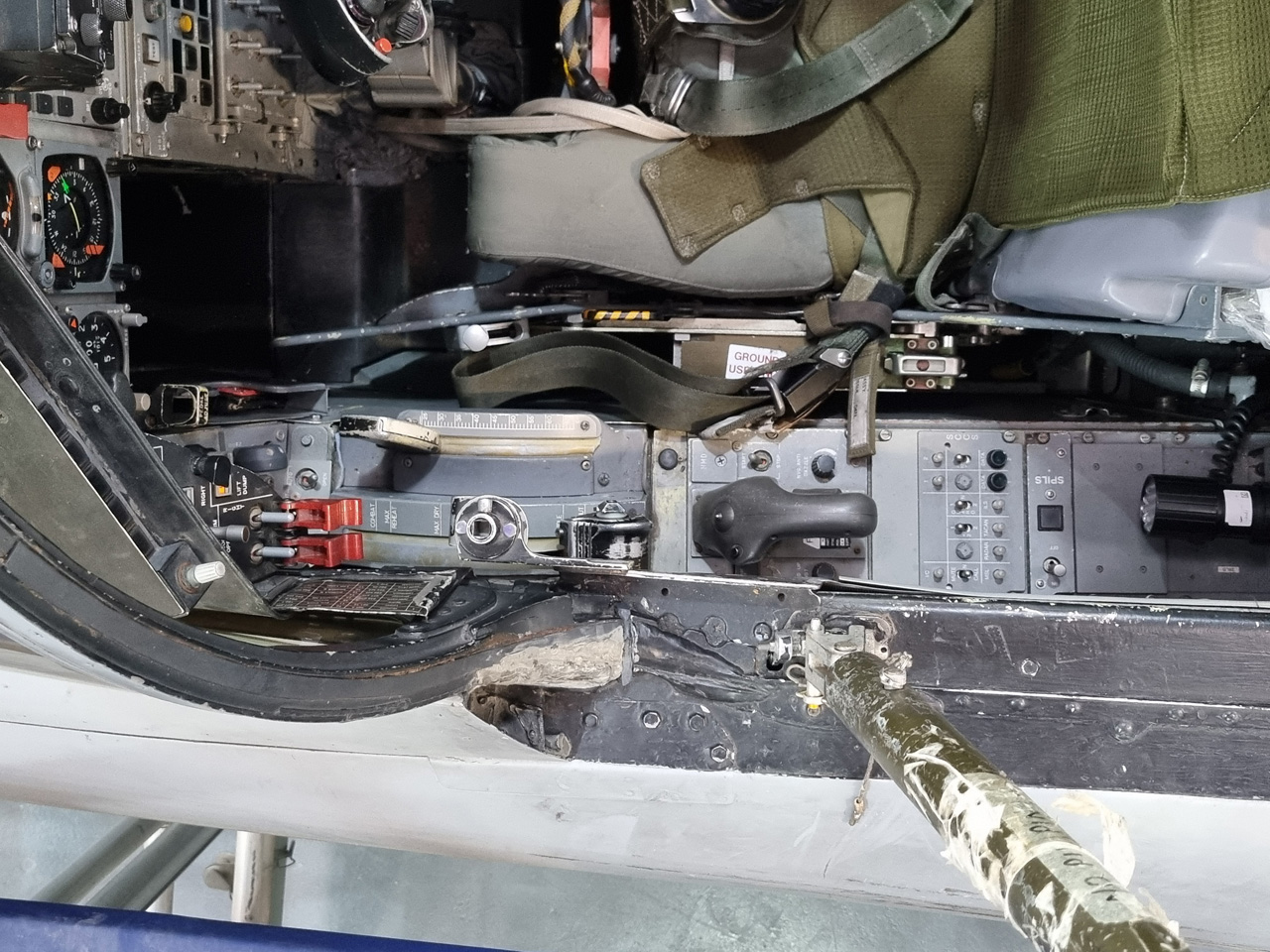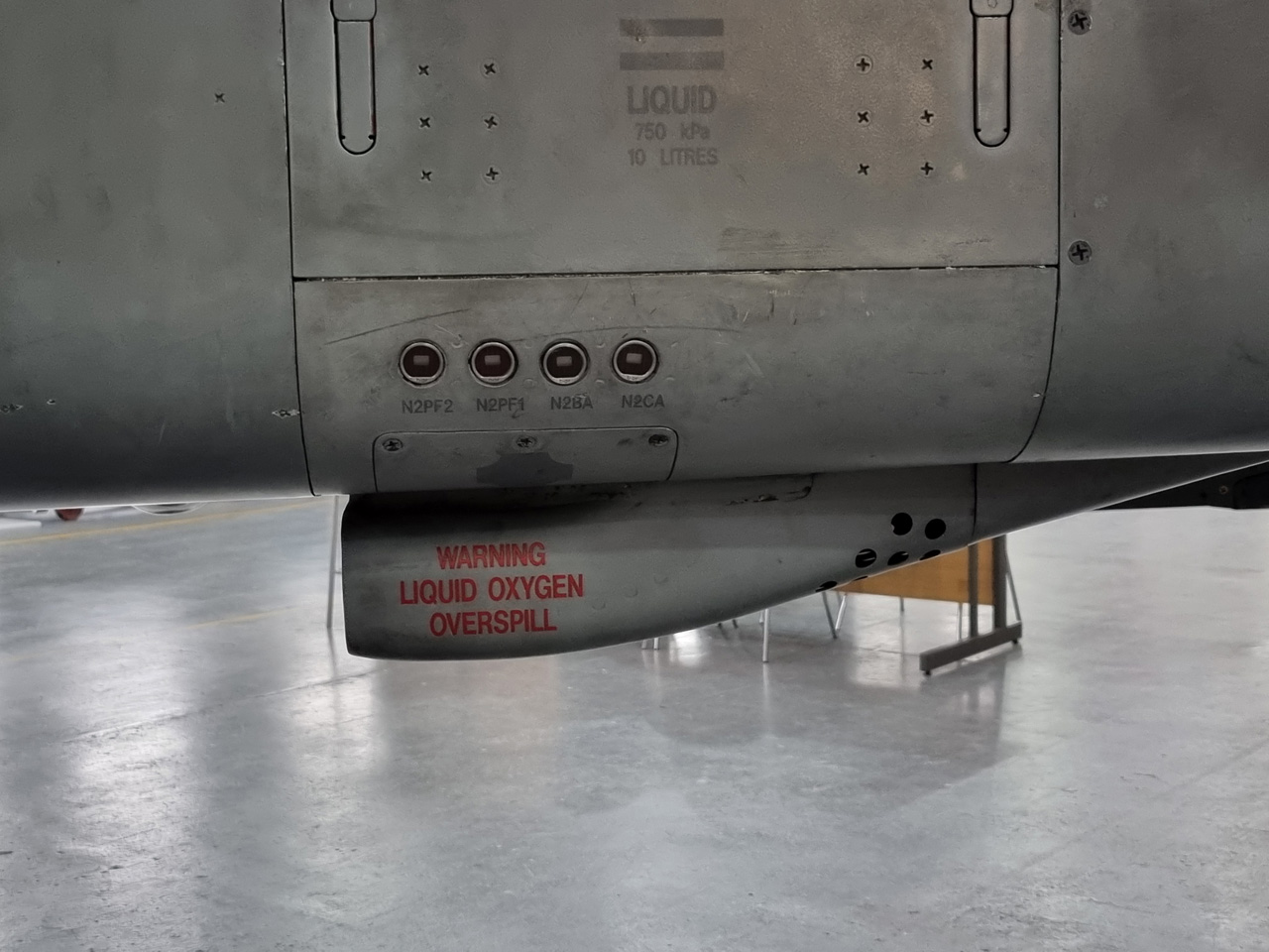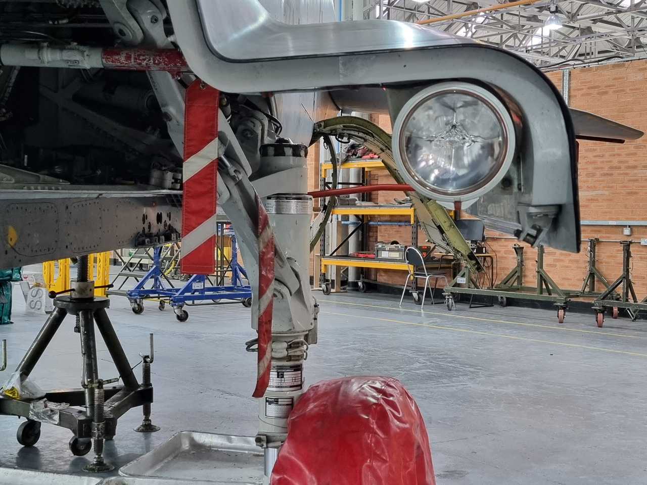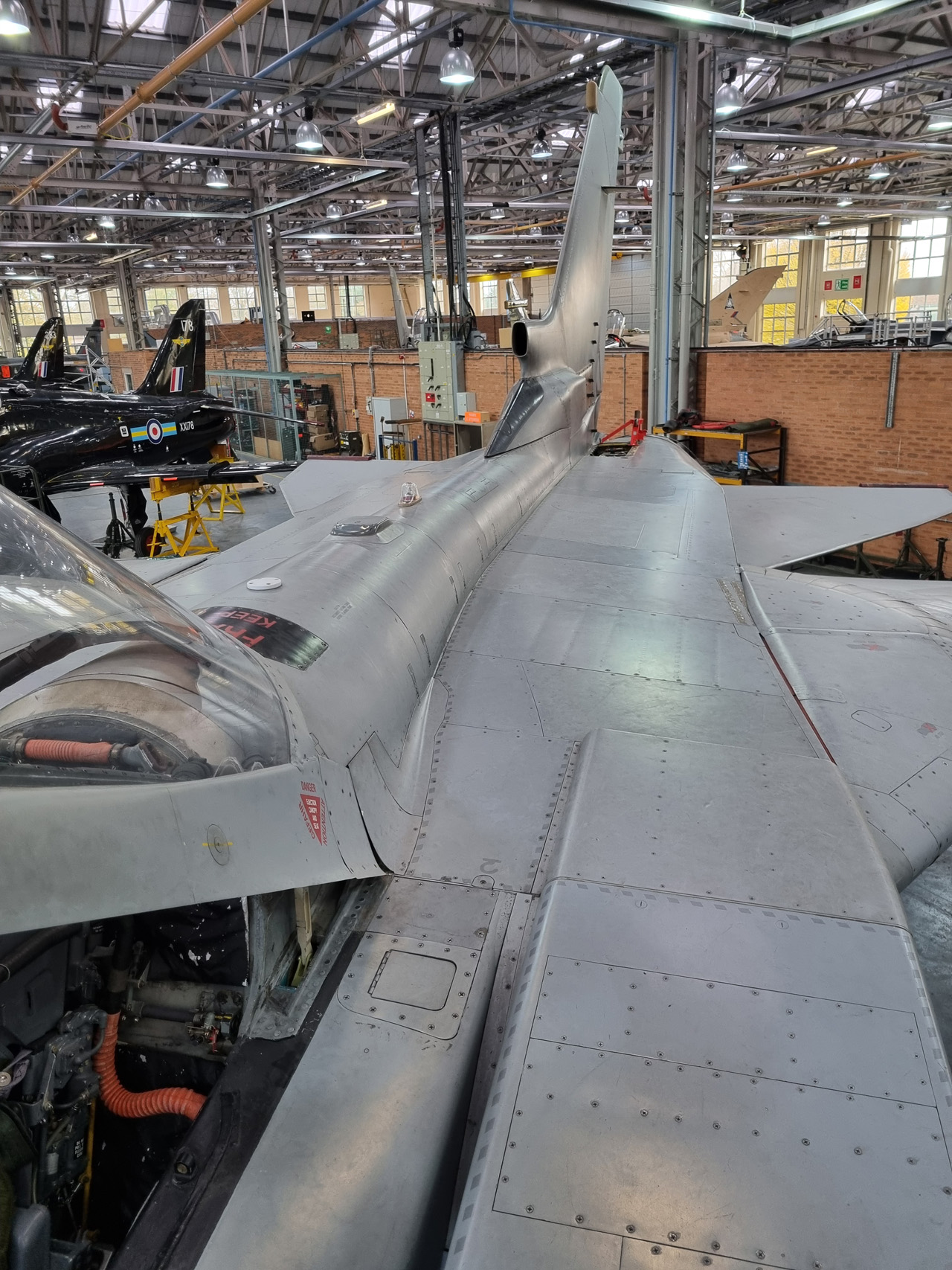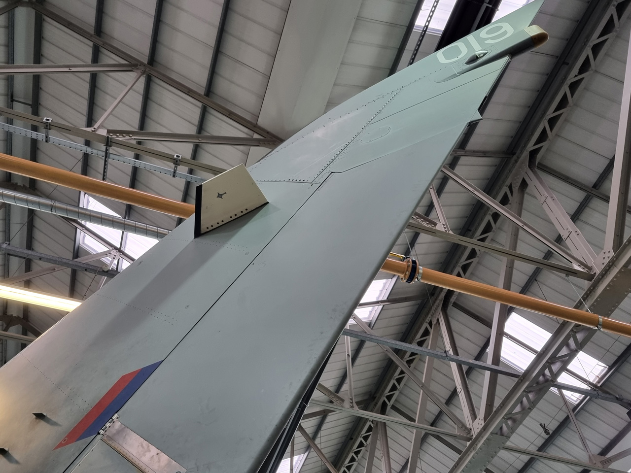 Die Mig Eater-Tornado stand in einfachem Grau in Cosford. Dafür wurde eine andere Tornado in der Wüstentarnung der Operationen Granby und Telic* lackiert und mit dem Haifischmaul der ZA447 versehen, das diese im Golfkrieg trug. Die im Wüstentarn bemalte Maschine war aber selbst nie dort im Einsatz und wurde erst später umlackiert. Interessant auch die Crash Pads unter den Flügeln, um die Verletzungsgefahr bei Stürzen vom Flügel zu verringern.