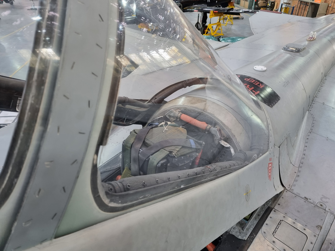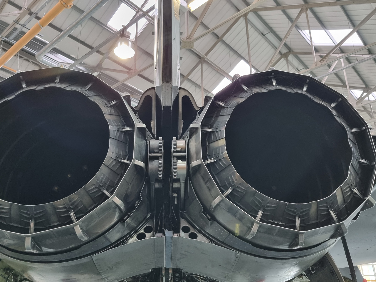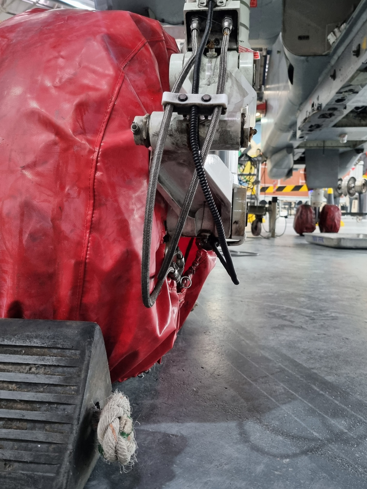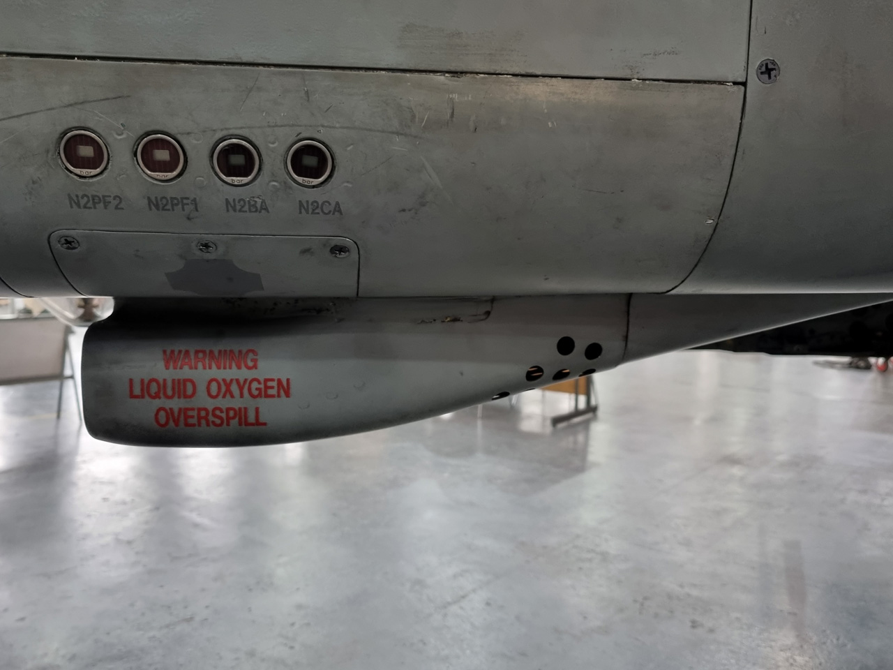 Die Mig Eater-Tornado stand in einfachem Grau in Cosford. Dafür wurde eine andere Tornado in der Wüstentarnung der Operationen Granby und Telic* lackiert und mit dem Haifischmaul der ZA447 versehen, das diese im Golfkrieg trug. Die im Wüstentarn bemalte Maschine war aber selbst nie dort im Einsatz und wurde erst später umlackiert. Interessant auch die Crash Pads unter den Flügeln, um die Verletzungsgefahr bei Stürzen vom Flügel zu verringern.