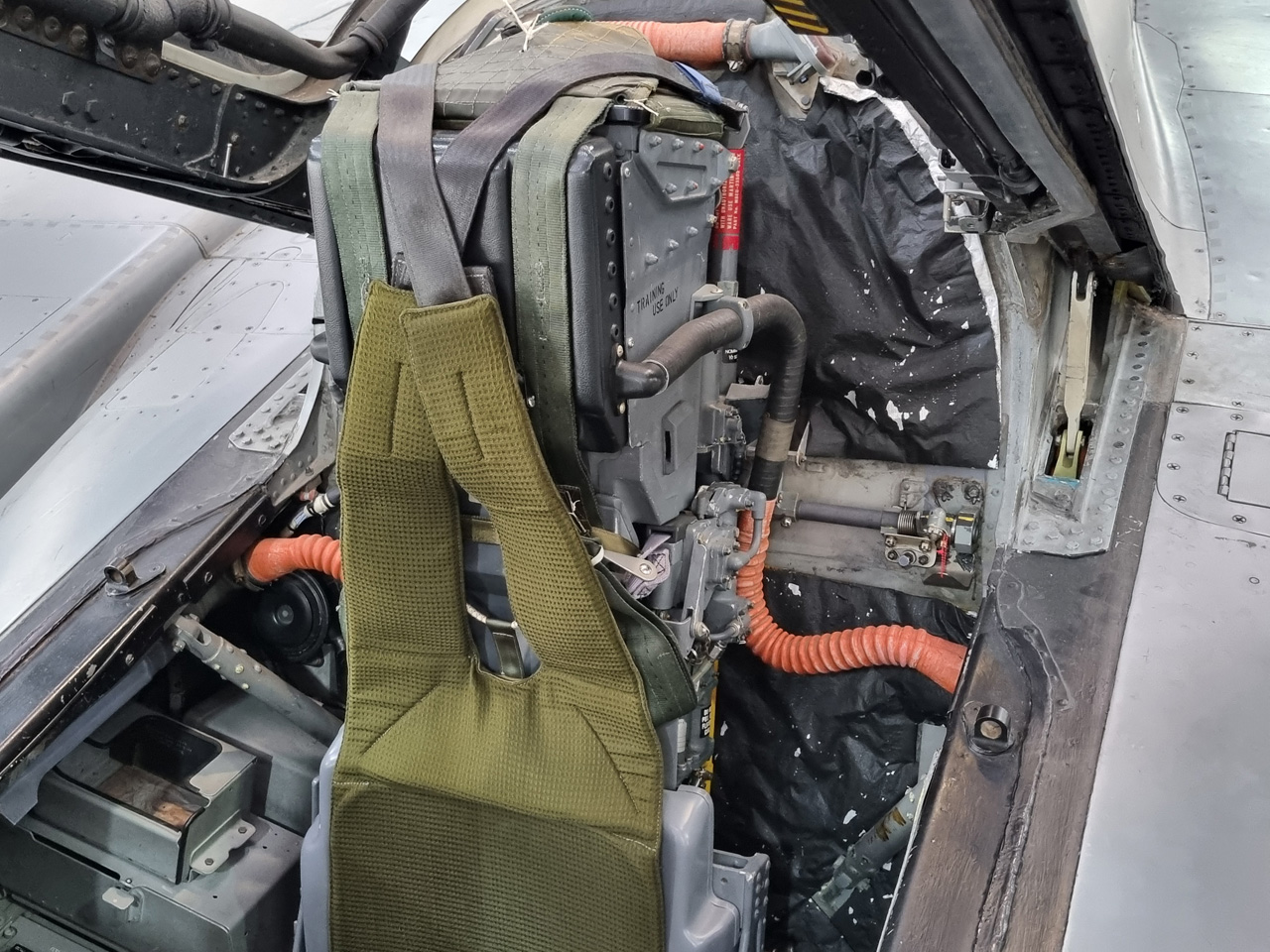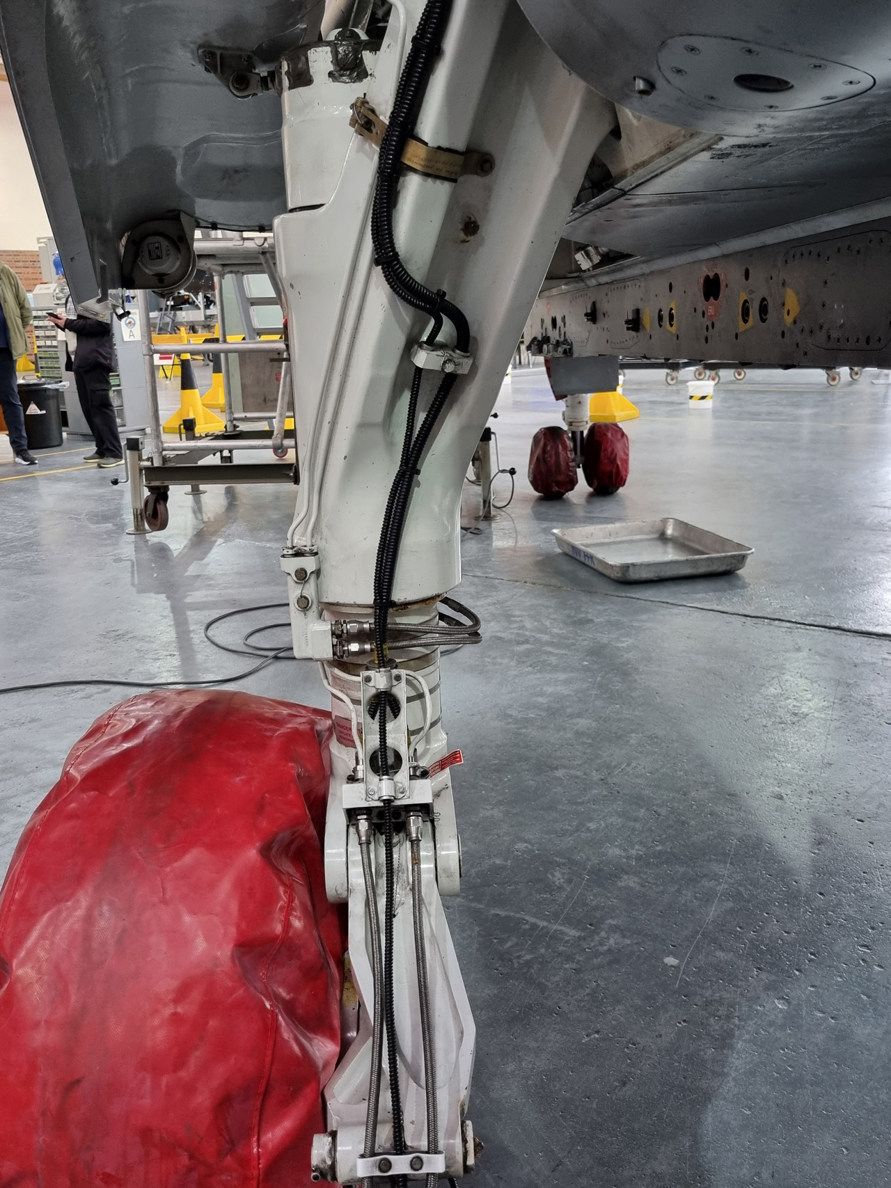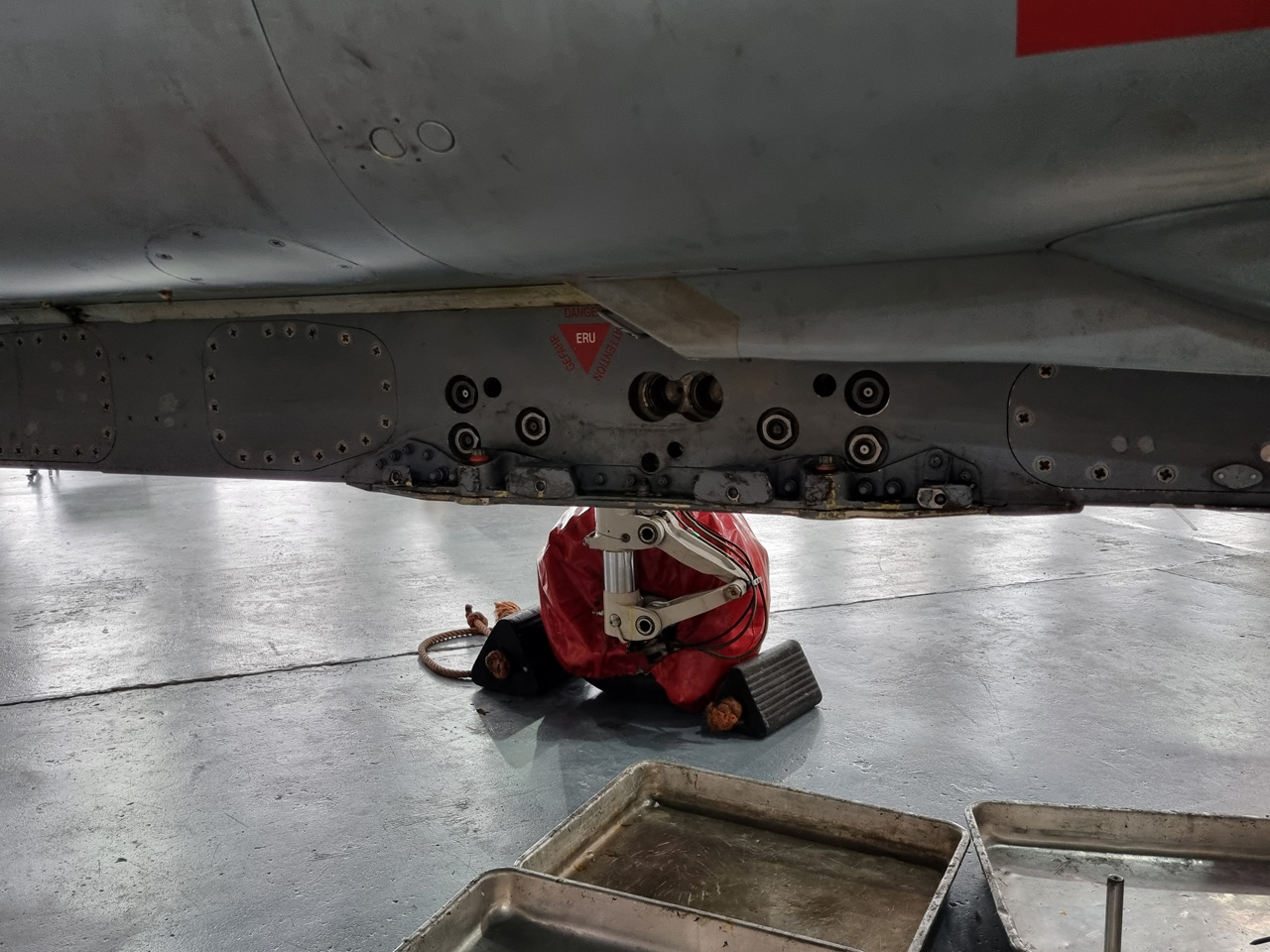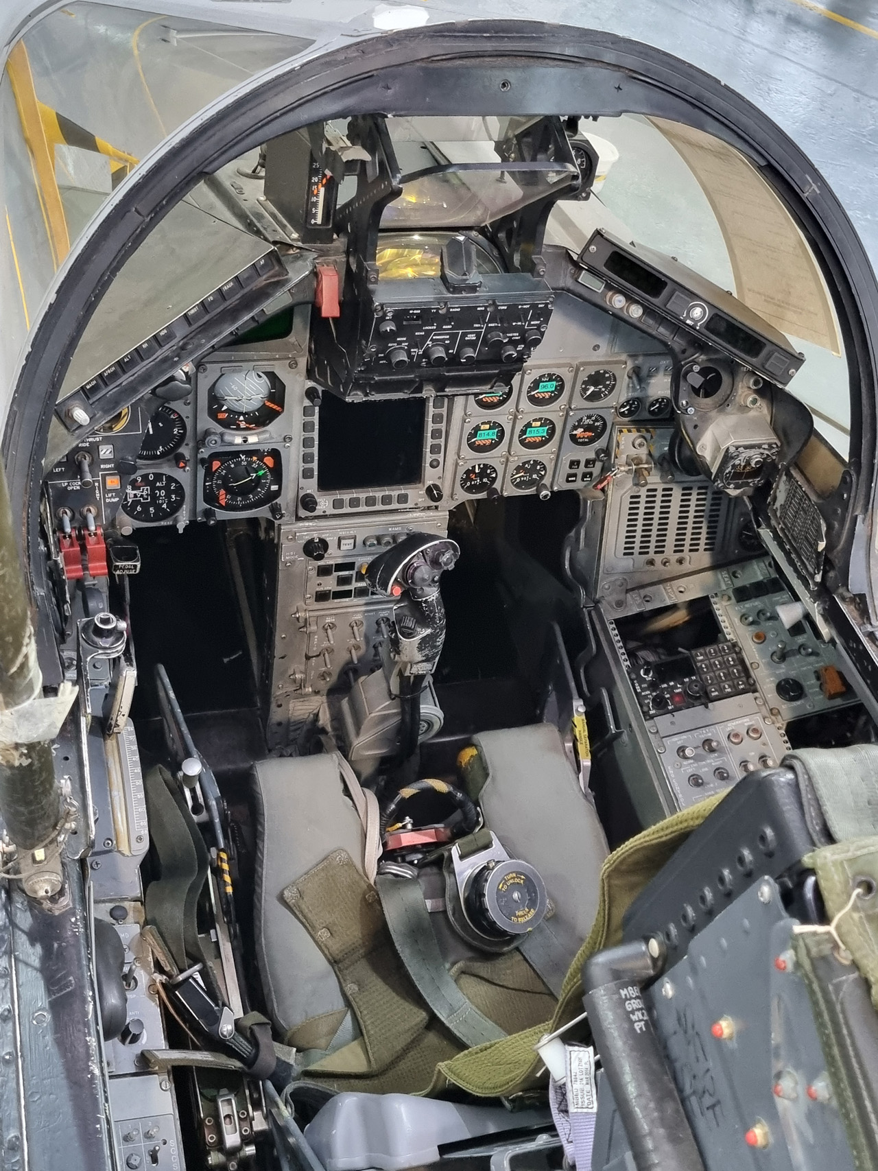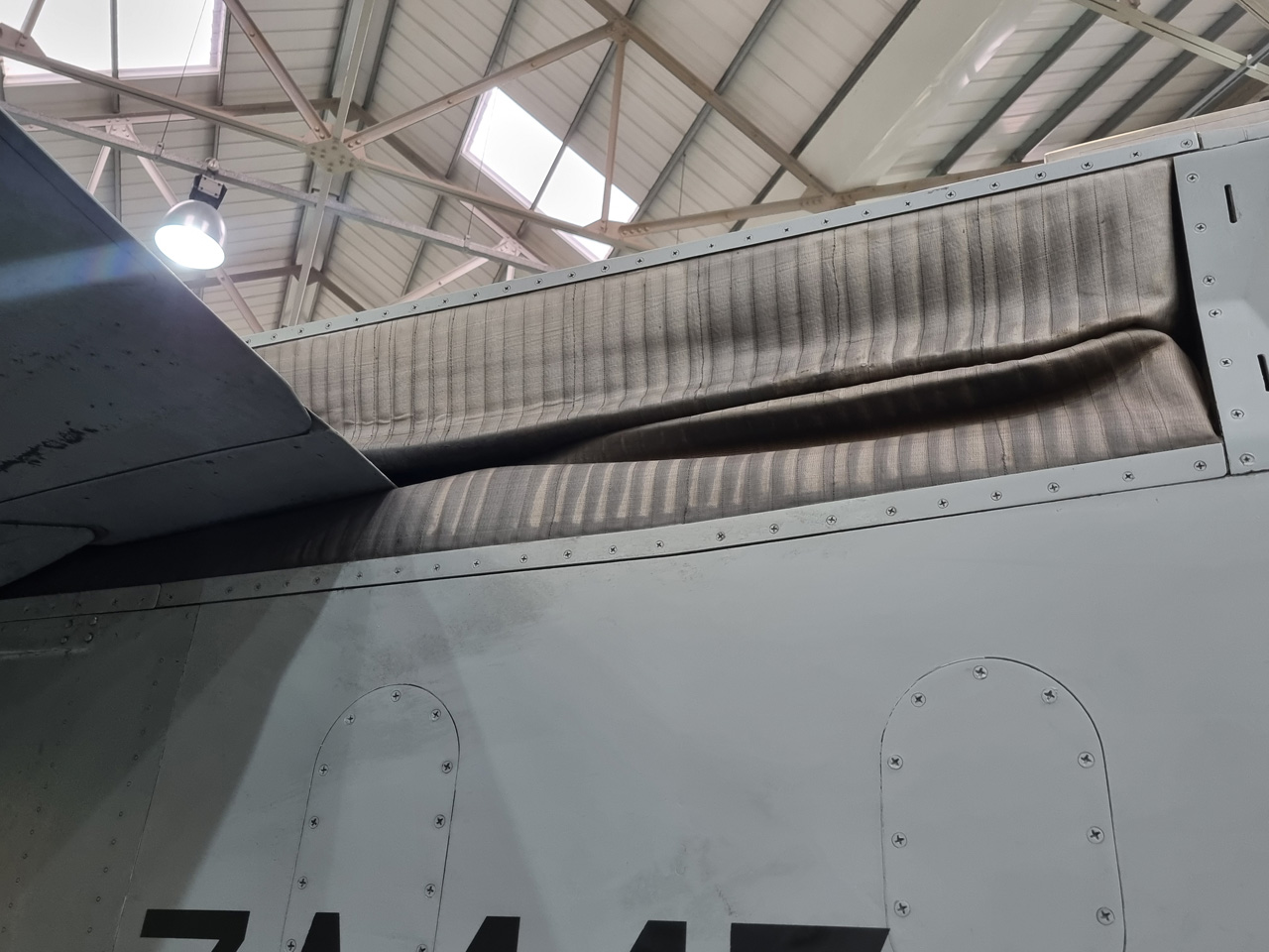 Die Mig Eater-Tornado stand in einfachem Grau in Cosford. Dafür wurde eine andere Tornado in der Wüstentarnung der Operationen Granby und Telic* lackiert und mit dem Haifischmaul der ZA447 versehen, das diese im Golfkrieg trug. Die im Wüstentarn bemalte Maschine war aber selbst nie dort im Einsatz und wurde erst später umlackiert. Interessant auch die Crash Pads unter den Flügeln, um die Verletzungsgefahr bei Stürzen vom Flügel zu verringern.